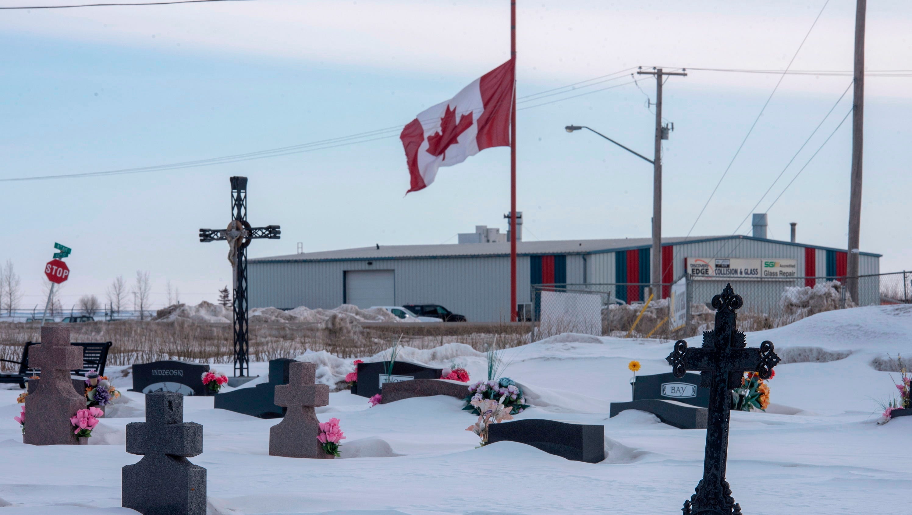 Flowers are left outside the Humboldt Uniplex ice-skating rink on April 7 2018 in Humboldt Saskatchewan after a bus carrying a junior.